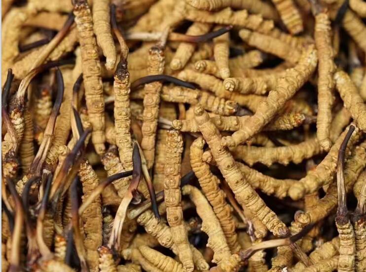 冬蟲(chóng)夏草菌子囊菌之子座出自寄主幼蟲(chóng)的頭部,單生,細(xì)長(zhǎng)如棒球棍狀,長(zhǎng)3~11厘米;不育柄部長(zhǎng)3~8厘米,直徑1.5~4毫米;上部為子座頭部,稍膨大,呈圓柱形,長(zhǎng)1.5~4厘米,褐色,除先端小部外,密生多數(shù)子囊殼;子囊殼大部陷入子座中,先端凸出于子座之外,卵形或橢圓形,長(zhǎng)250~500微米,直徑80~200微米,每一子囊殼內(nèi)有多數(shù)長(zhǎng)條狀線(xiàn)形的子囊;每一子囊內(nèi)有8個(gè)具有隔膜的子囊孢子。寄主為鱗翅目、鞘翅目等昆蟲(chóng)的幼蟲(chóng),冬季菌絲侵入蟄居于土中的幼蟲(chóng)體內(nèi),使蟲(chóng)體充滿(mǎn)菌絲而死亡。夏季長(zhǎng)出子座。夏至前后,當(dāng)積雪尚未溶化時(shí)入山采集,此時(shí)子座多露于雪面。挖起后,在蟲(chóng)體潮濕未干時(shí),除去外層的泥土及膜皮,曬干?;蛟儆命S酒噴之使軟,整理平直,每數(shù)條用紅線(xiàn)扎成小把;用微火烘干。冬蟲(chóng)夏草為蟲(chóng)體與菌座相連而成,全長(zhǎng)9~12厘米。蟲(chóng)體如三眠老蠶,長(zhǎng)約3~6厘米,粗約0.4~0.7厘米。外表呈深黃色,粗糙,背部有多數(shù)橫皺紋,腹面有足8對(duì),位于蟲(chóng)體中部的4對(duì)明顯易見(jiàn)。斷面內(nèi)心白色,或略發(fā)黃,周邊顯深黃色。菌座自蟲(chóng)體頭部生出,呈棒狀,彎曲,上部略膨大。表面灰褐色或黑褐色,長(zhǎng)可達(dá)4~8厘米,徑約0.3厘米。折斷時(shí)內(nèi)心空虛,粉白色。微臭,味淡。主產(chǎn)青海、西藏、四川、甘肅、云南、貴州。