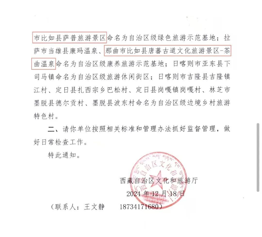喜報(bào)!那曲比如縣兩處景區(qū)被評(píng)為示范基地