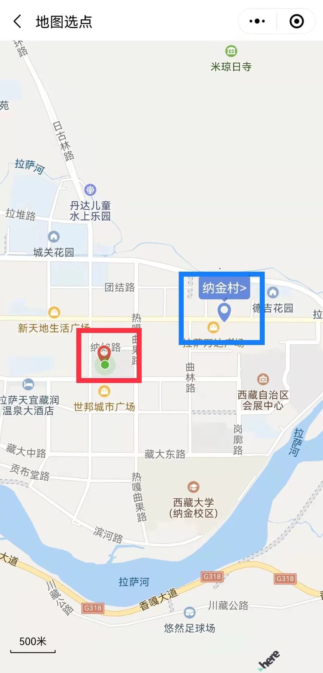 第三步:紅色位置,為搜索地點(diǎn)自行輸入地址定位點(diǎn);藍(lán)色位置,為你所定位地點(diǎn)的管控街道(鄉(xiāng))和社區(qū)(村),請(qǐng)點(diǎn)擊。