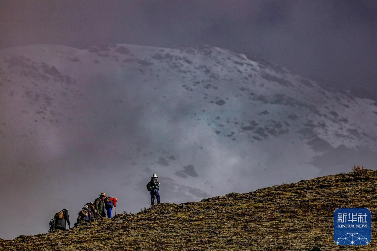 清晨,西藏那曲市比如縣良曲鄉(xiāng)然木塘村蟲草采集點(diǎn)的人們統(tǒng)一前往山上采集蟲草(5月26日攝)。新華社記者 晉美多吉 攝